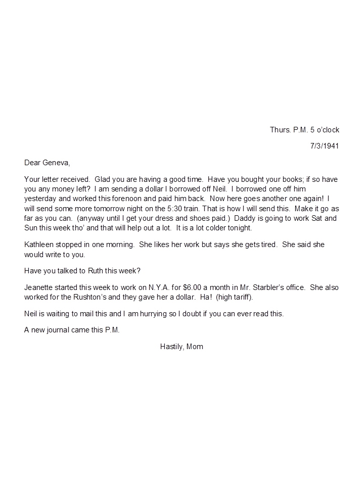 July 3, 1941, Naomi to Geneva