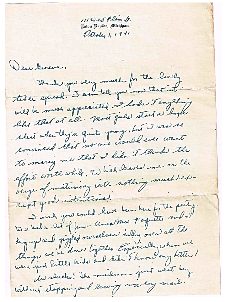 October 1, 1941, Beth to Geneva