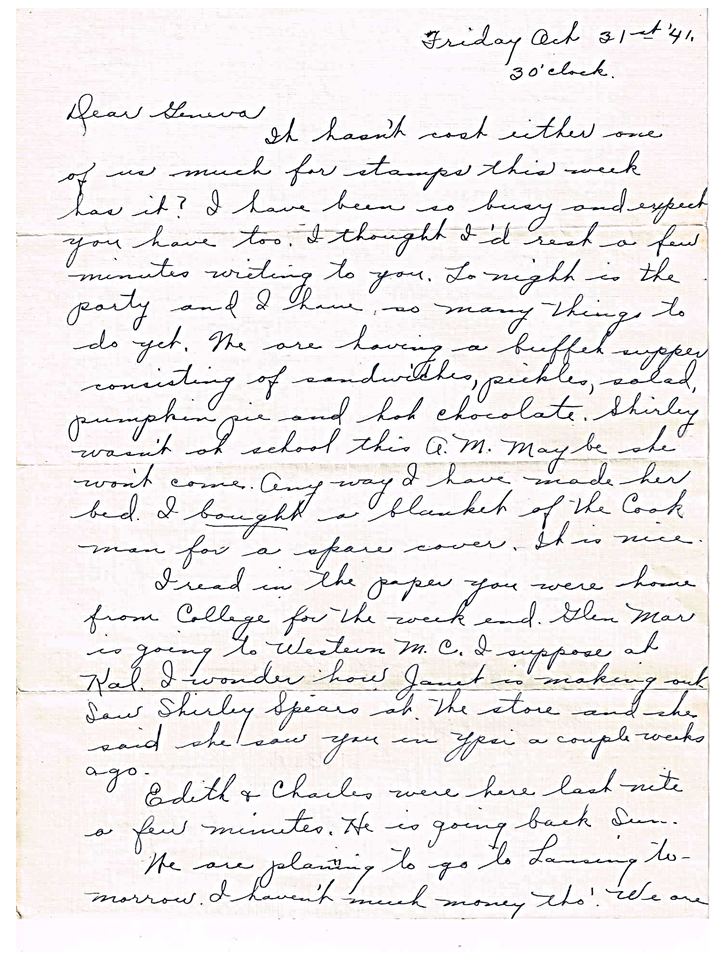 October 31, 1941, Naomi to Geneva