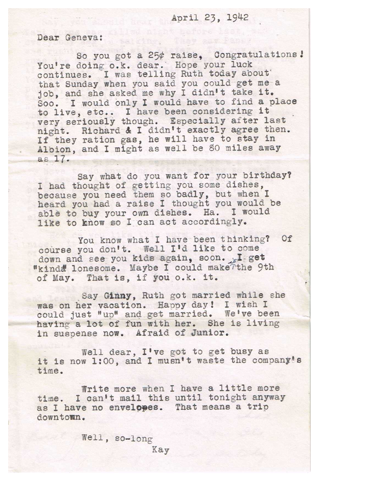 April 23, 1942, Kay to Geneva