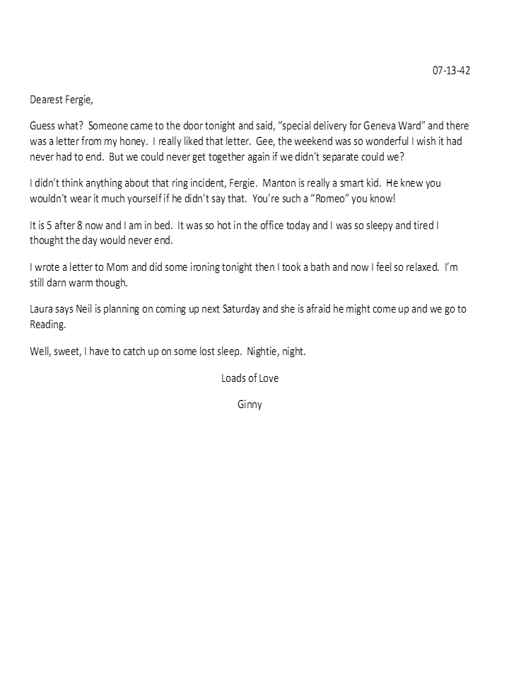 July 13, 1942, Geneva to Harold