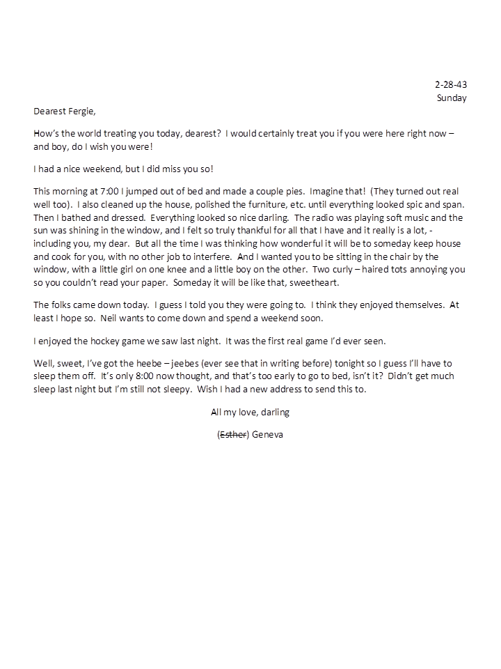 February 28, 1943, Geneva to Harold