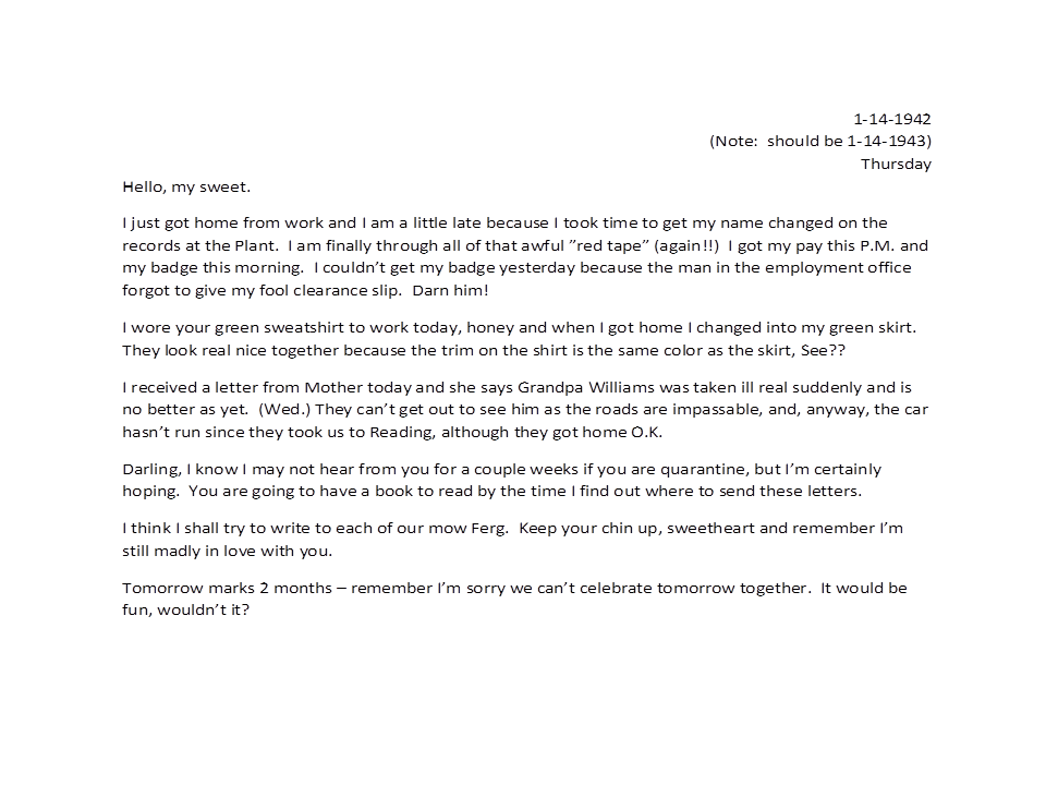 January 14, 1943, Geneva to Harold