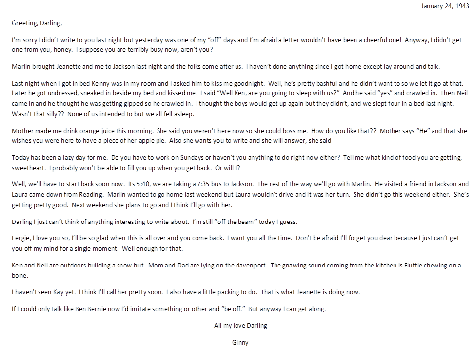 January 24, 1943, Geneva to Harold
