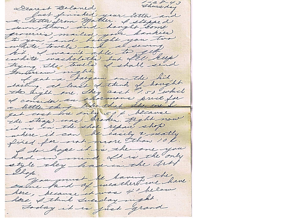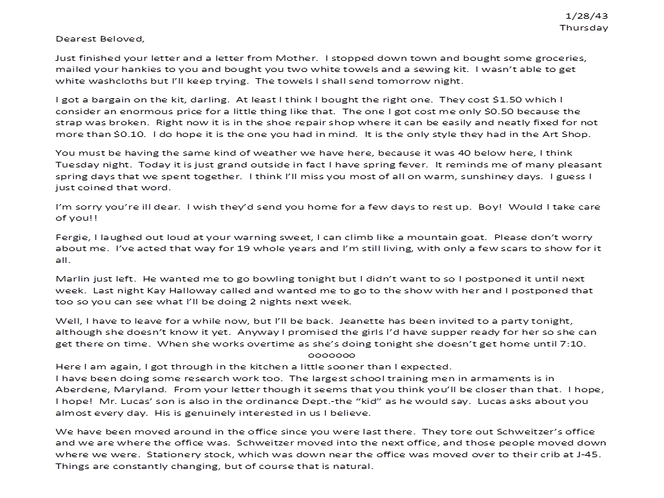 January 28, 1943, Geneva to Harold