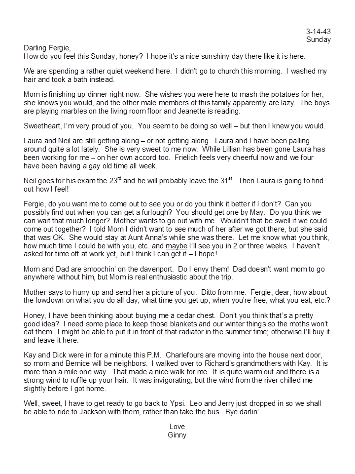 March 14, 1943, Geneva to Harold