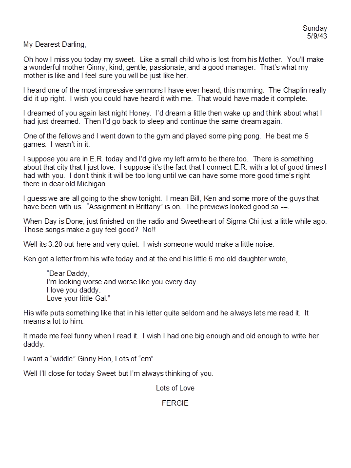 May 9, 1943, Harold to Geneva