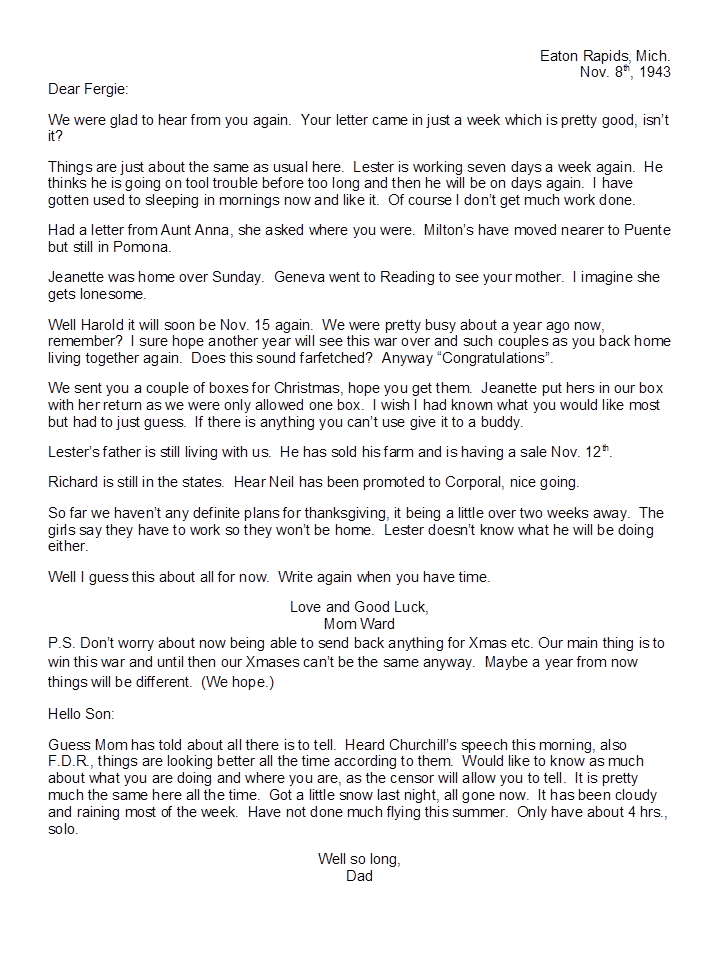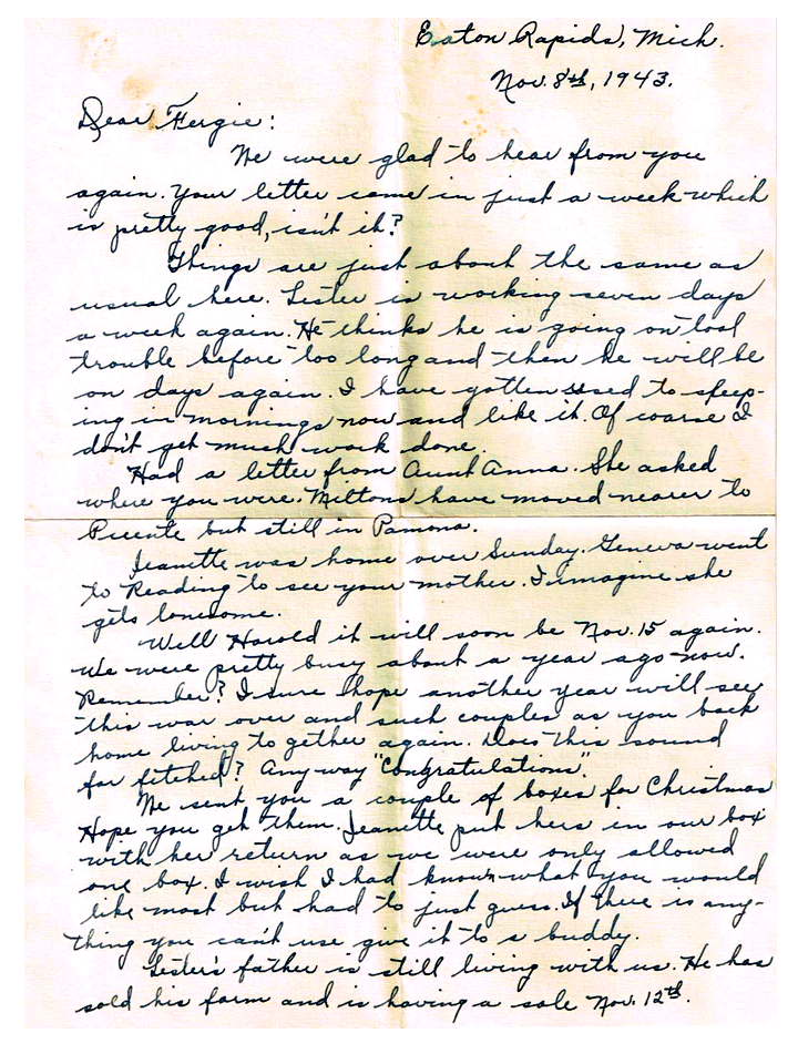 November 8, 1943, Naomi to Harold