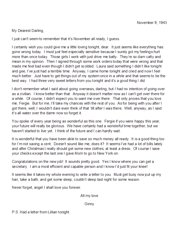 November 9, 1943, Geneva to Harold