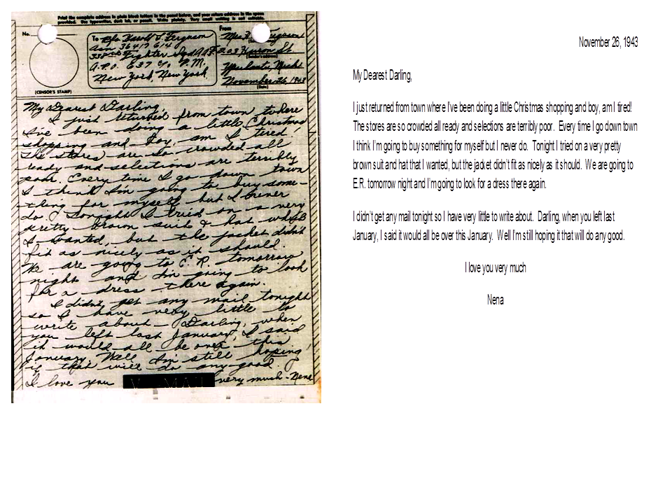 November 26, 1943, Geneva to Harold