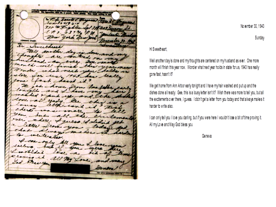 November 30, 1943, Geneva to Harold