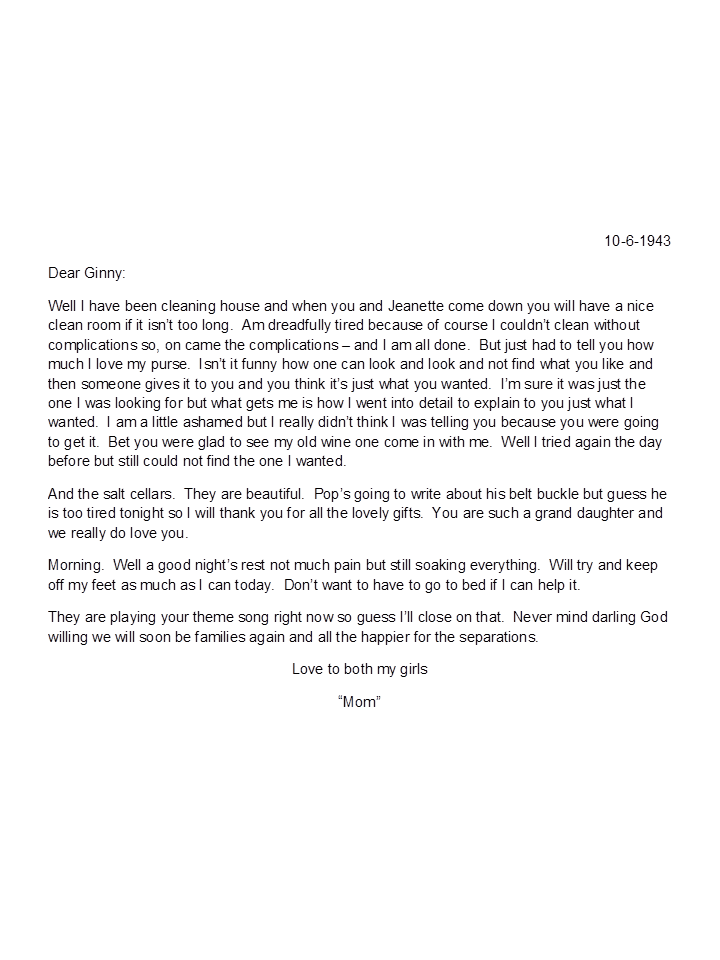 October 6, 1943, Nellie to Geneva