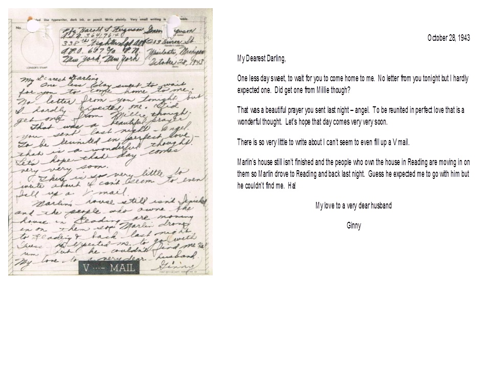 October 28, 1943, Geneva to Harold