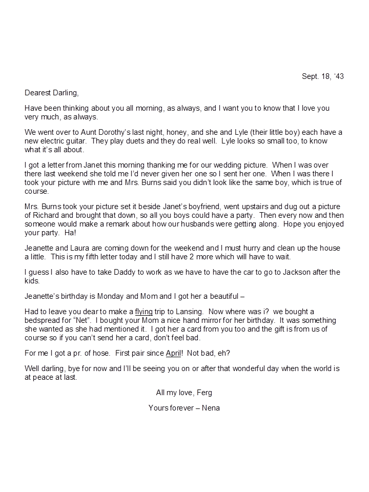 September 18, 1943, Geneva to Harold