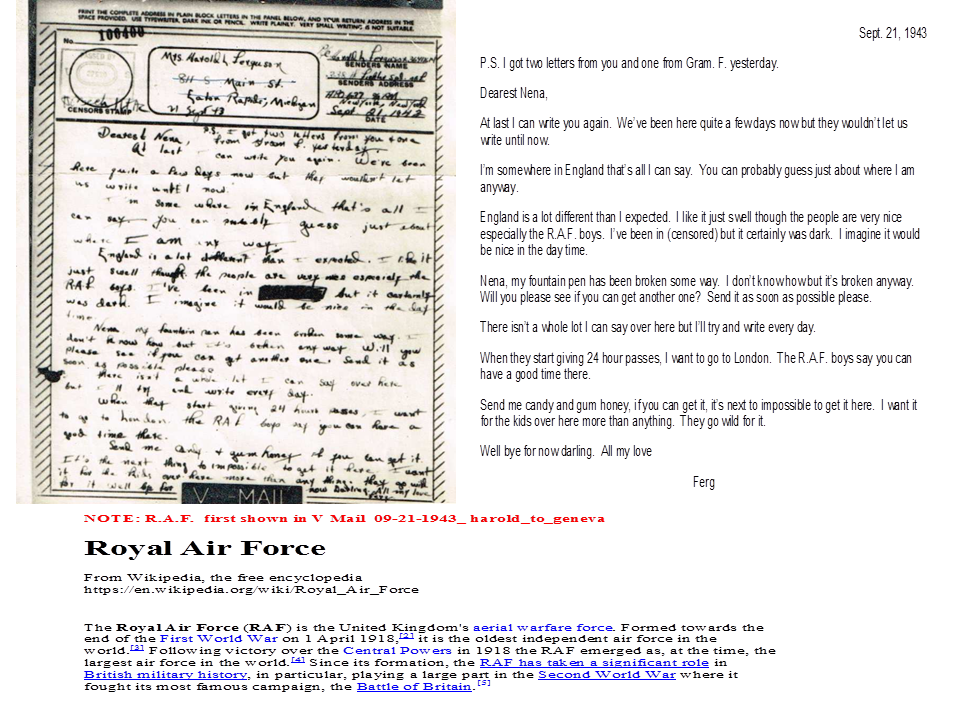 September 21, 1943, Harold to Geneva