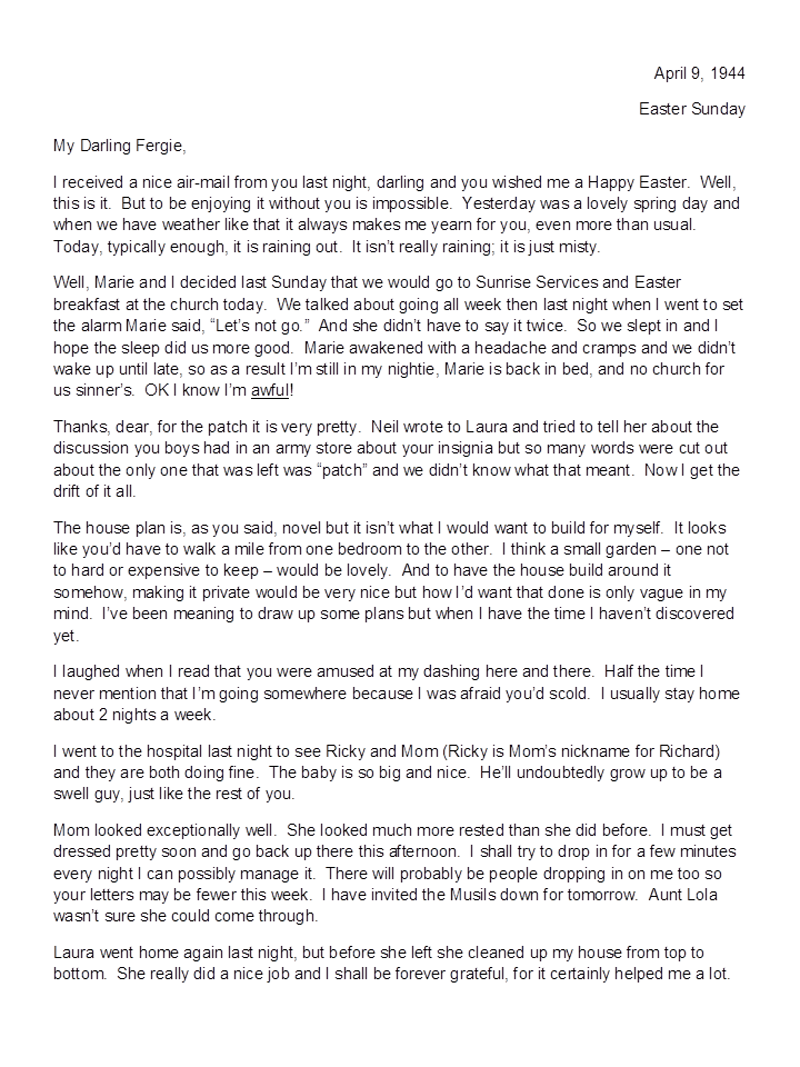 April 9, 1944, Geneva to Harold