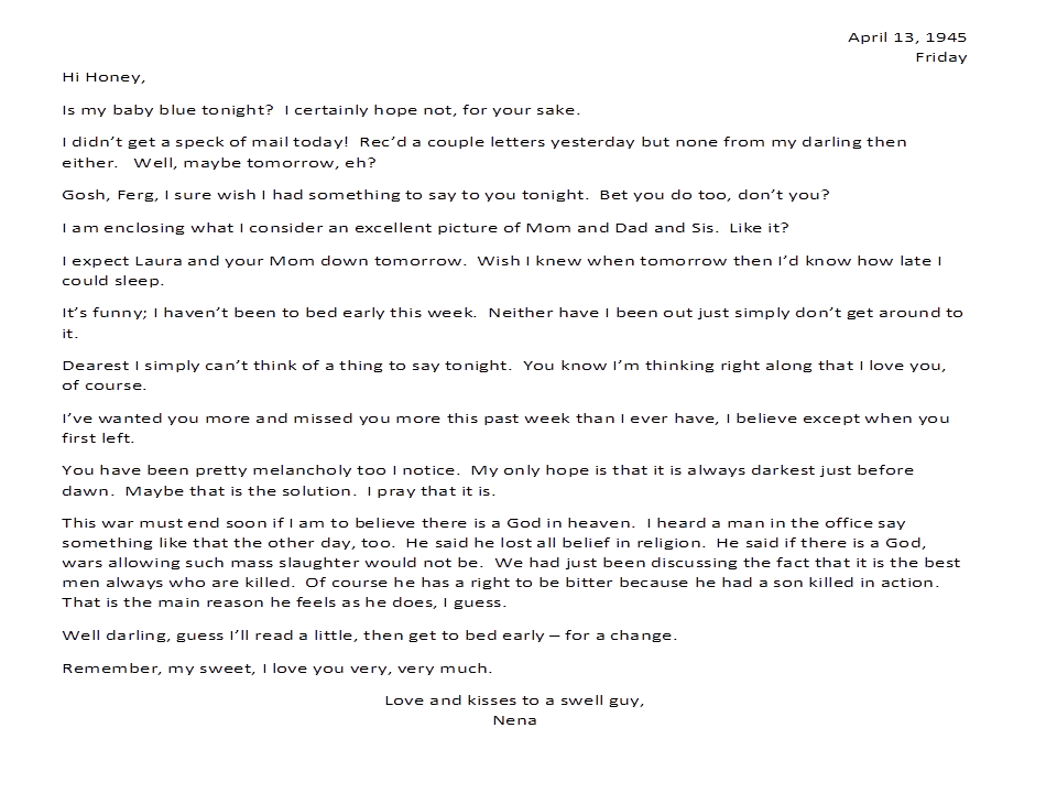 April 13, 1945, Geneva to Harold